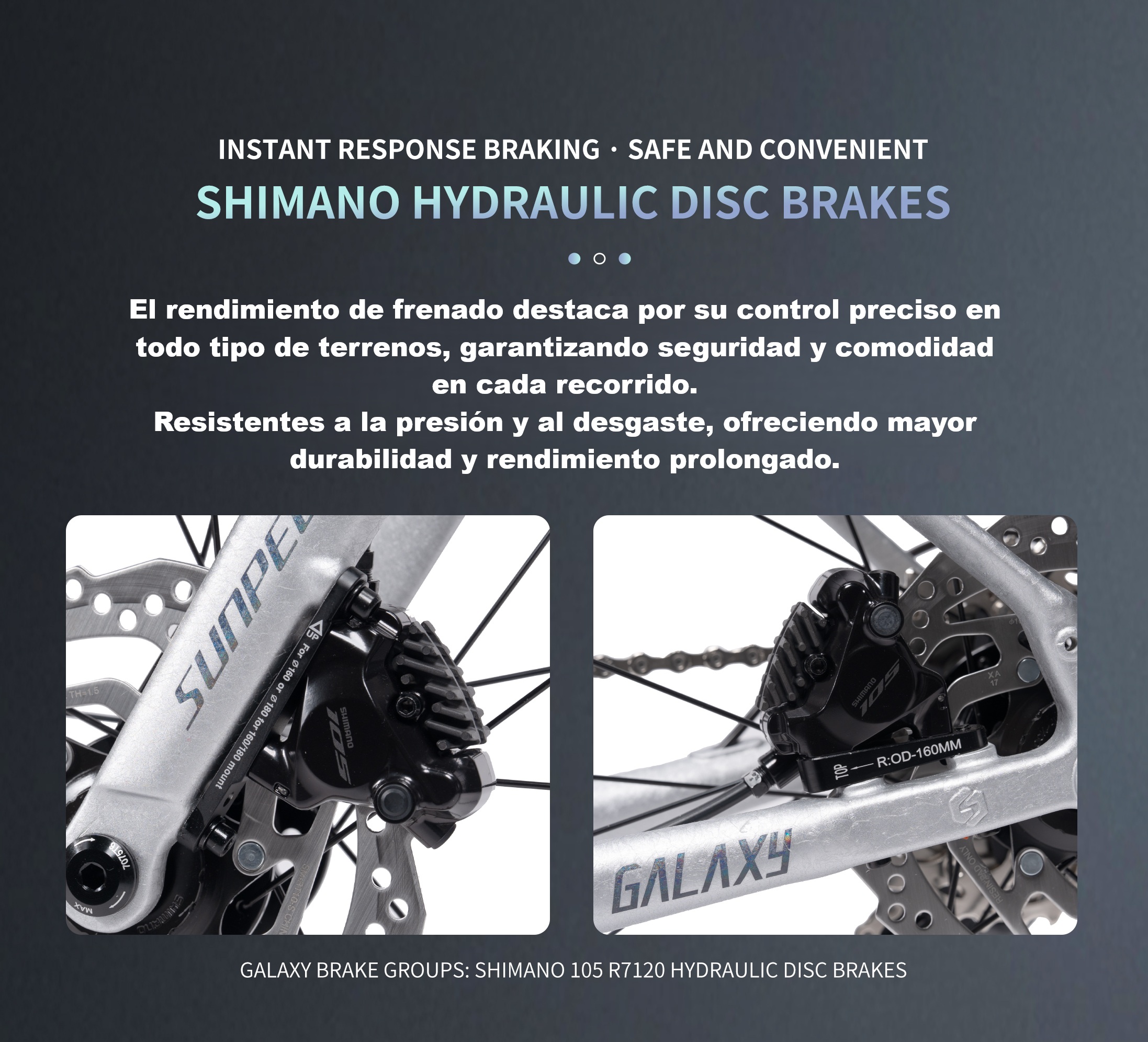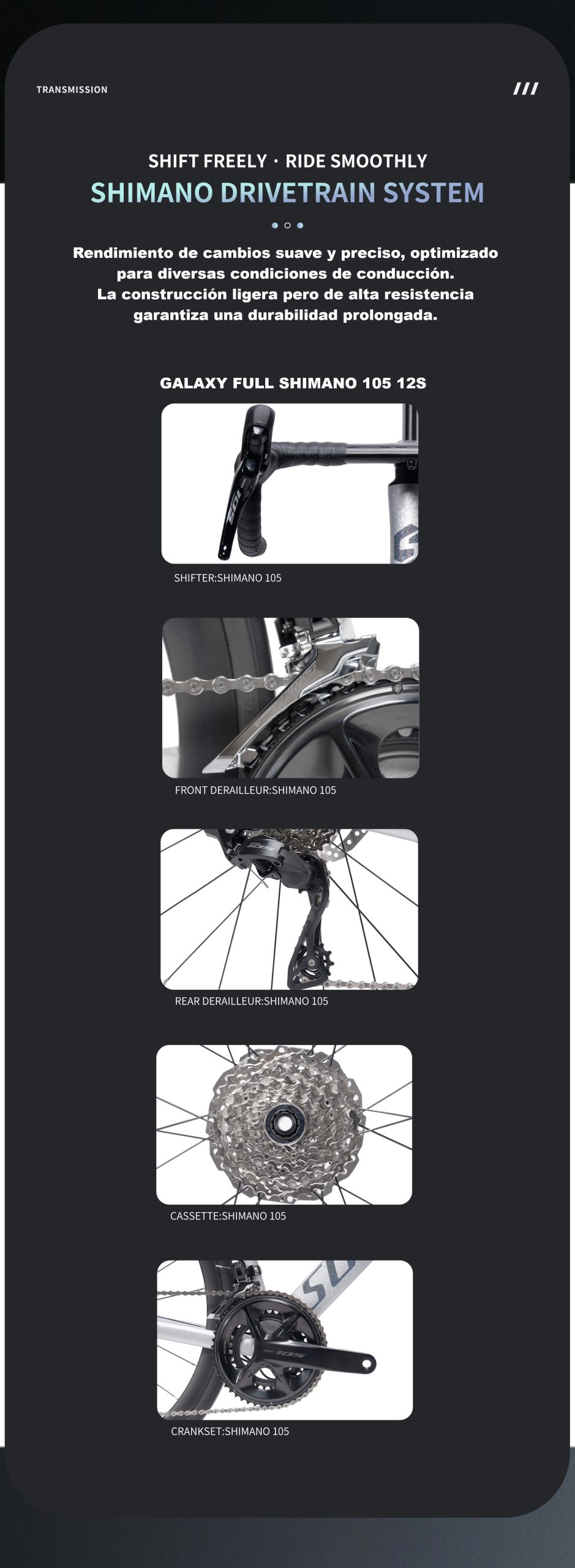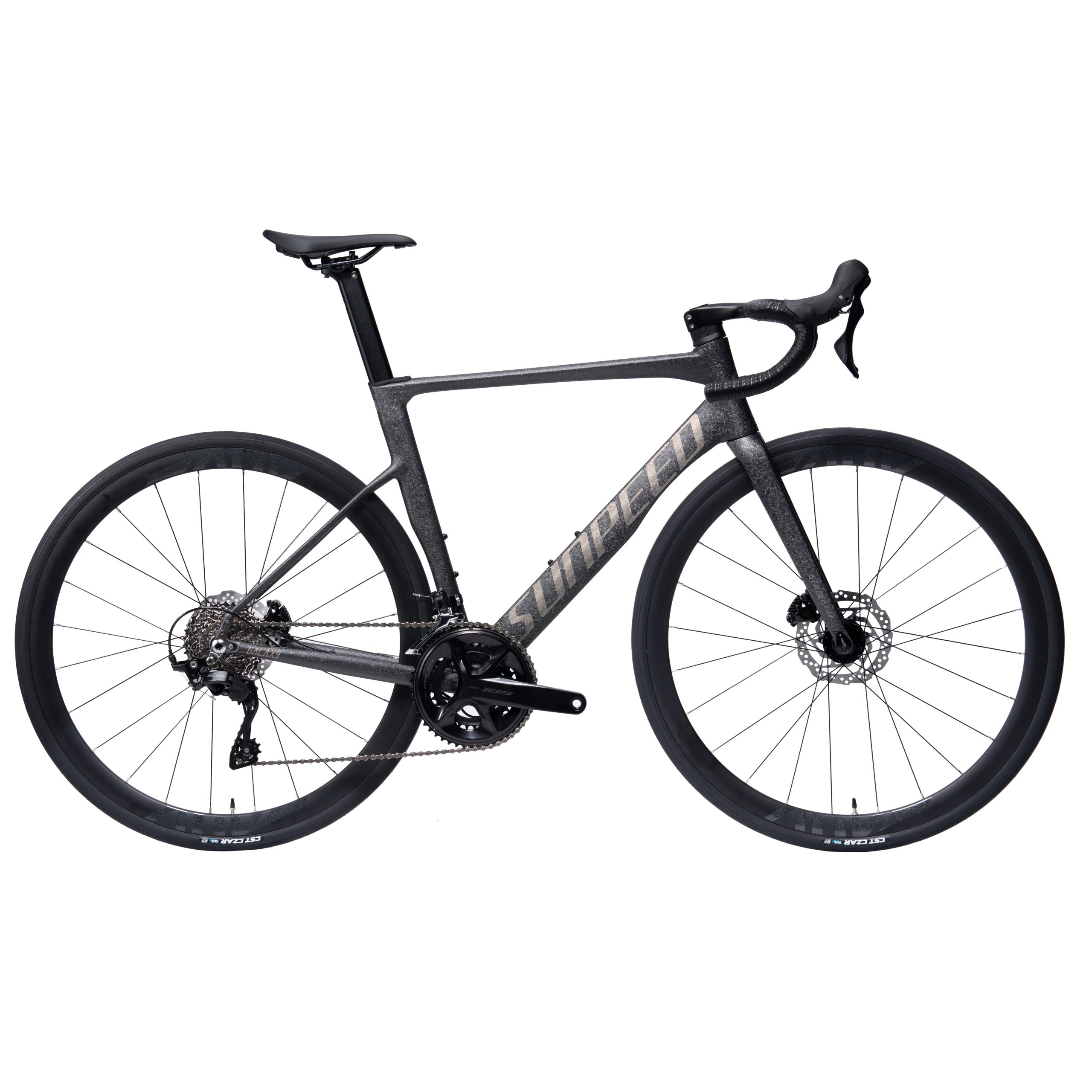 a Sunpeed Galaxy es una bicicleta de ruta diseñada para ciclistas que buscan rendimiento, precisión y confiabilidad en cada salida. Equipada con grupo completo Shimano 105 de 12 velocidades, ofrece cambios rápidos y suaves, junto a frenos hidráulicos Shimano 105 que garantizan una frenada potente y segura en todo tipo de condiciones.