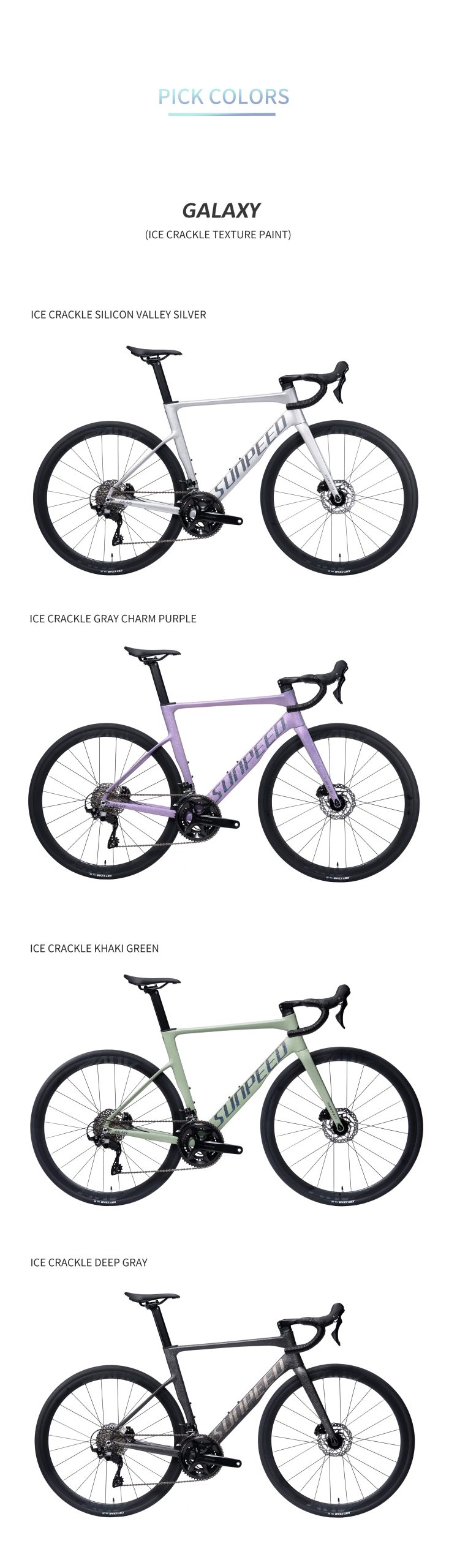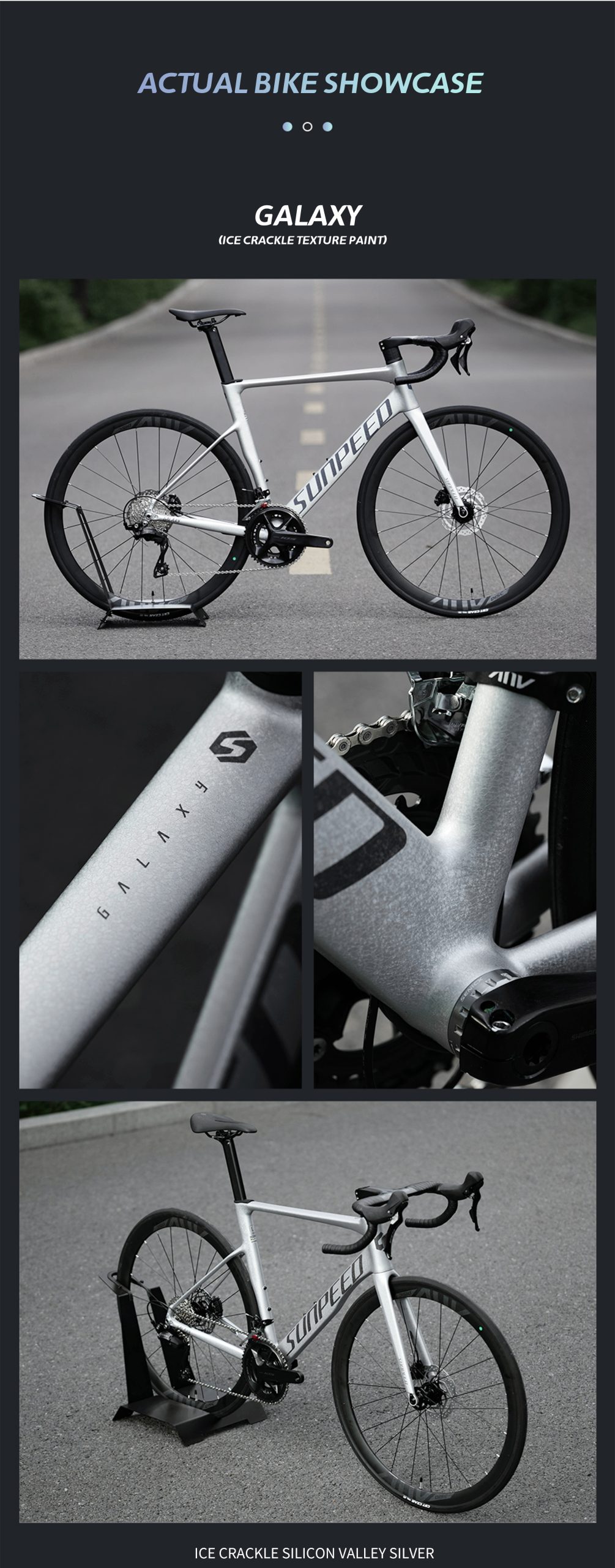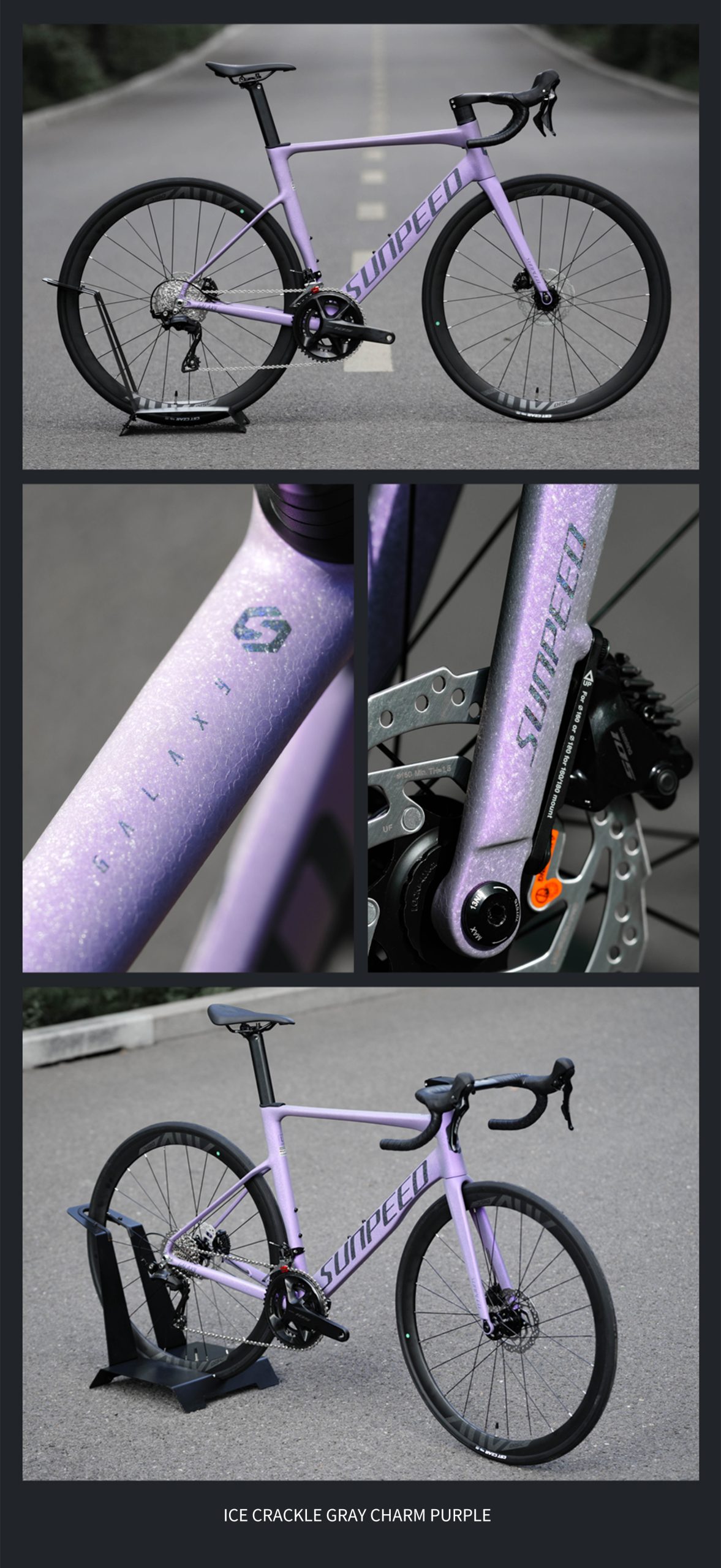 a Sunpeed Galaxy es una bicicleta de ruta diseñada para ciclistas que buscan rendimiento, precisión y confiabilidad en cada salida. Equipada con grupo completo Shimano 105 de 12 velocidades, ofrece cambios rápidos y suaves, junto a frenos hidráulicos Shimano 105 que garantizan una frenada potente y segura en todo tipo de condiciones.