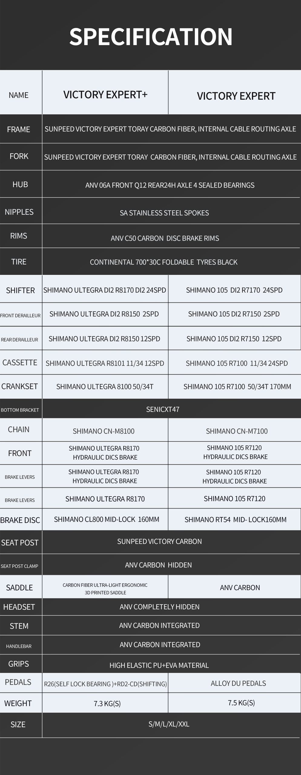 Con un peso aproximado de solo 7,3 kg, la Victory Expert+ es una bicicleta de nivel premium, ideal para ciclistas avanzados y competitivos que buscan el máximo rendimiento sin concesiones.